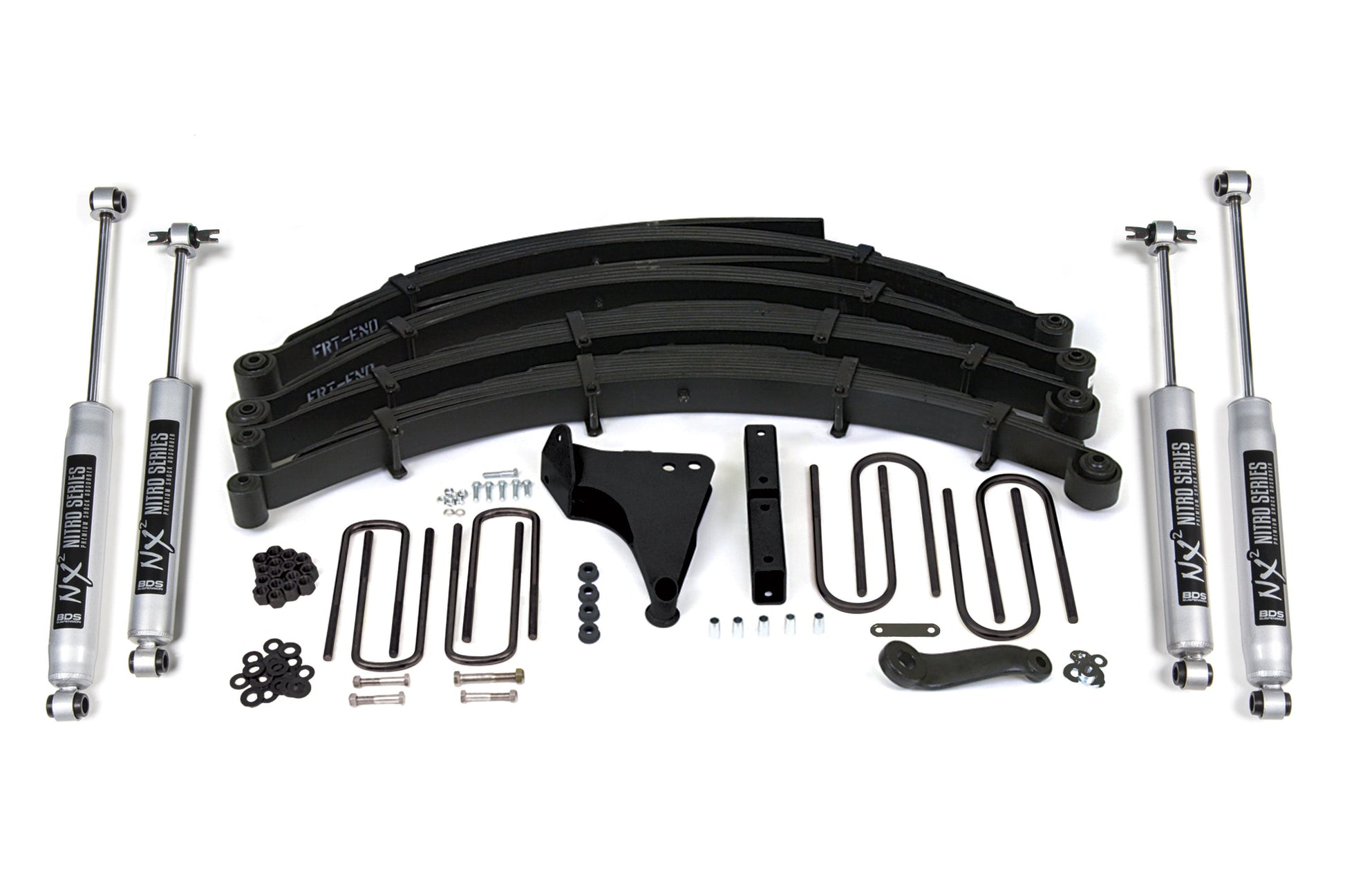 In the rear the base kit utilizes replacement Glide-Ride full leaf spring packs, u-bolts and a matching set of NX2 Nitro or FOX Performance shocks.