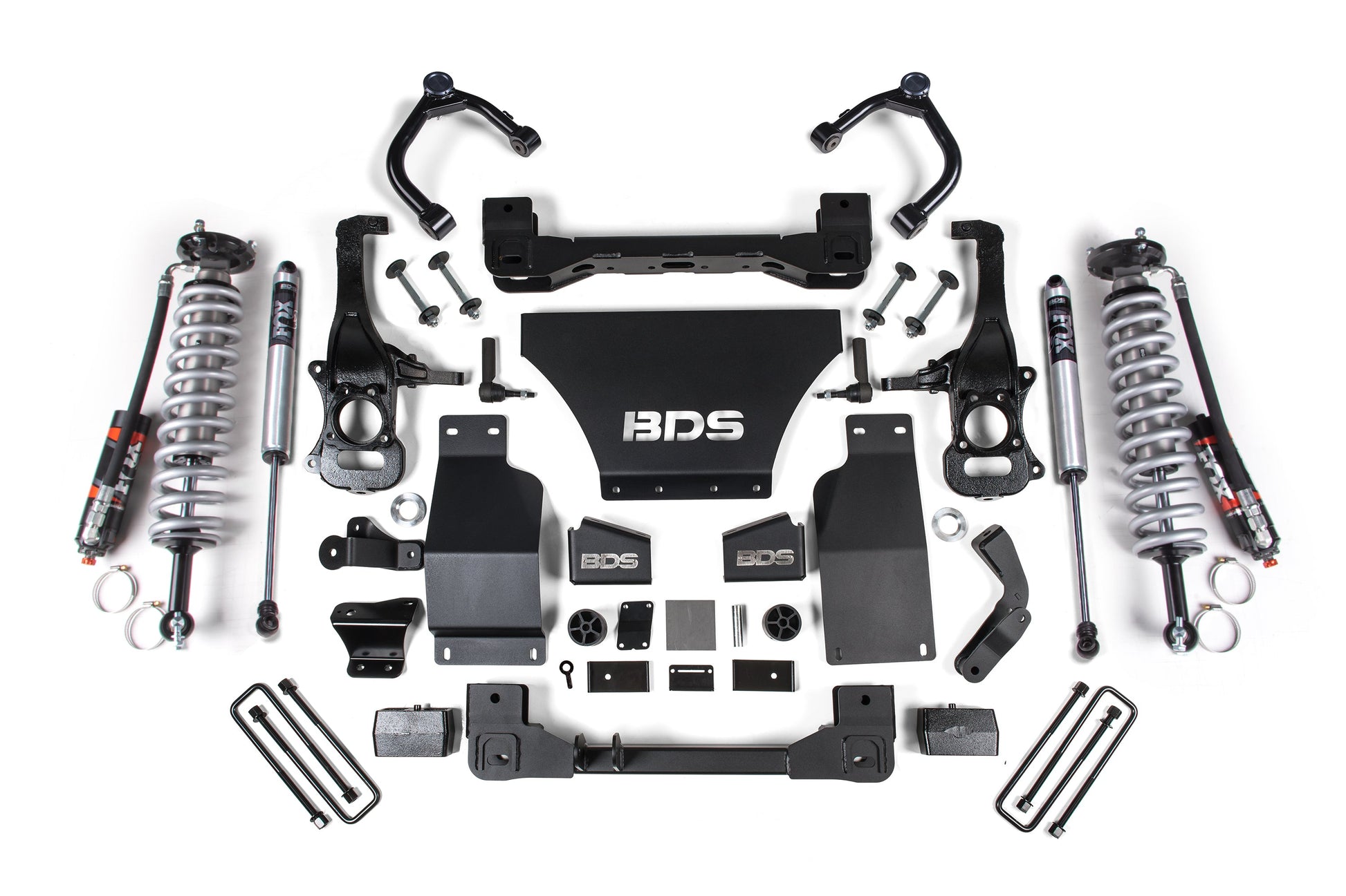 In the rear BDS offers a heavy duty lift block to lift and level that stance. The lift block installs in place of the stock block and retains ride quality and load capacity. Also for the rear are new u-bolts, brake line brackets and precision tuned premium FOX 2.0 Performance Series shocks.