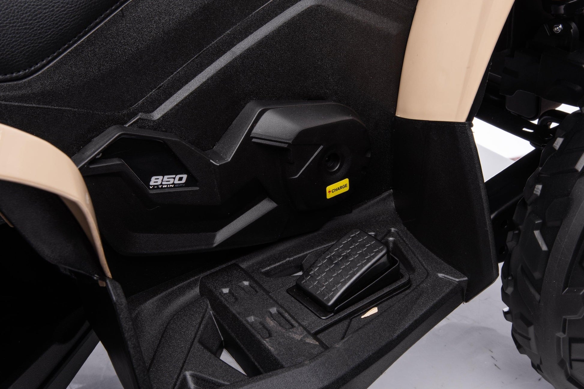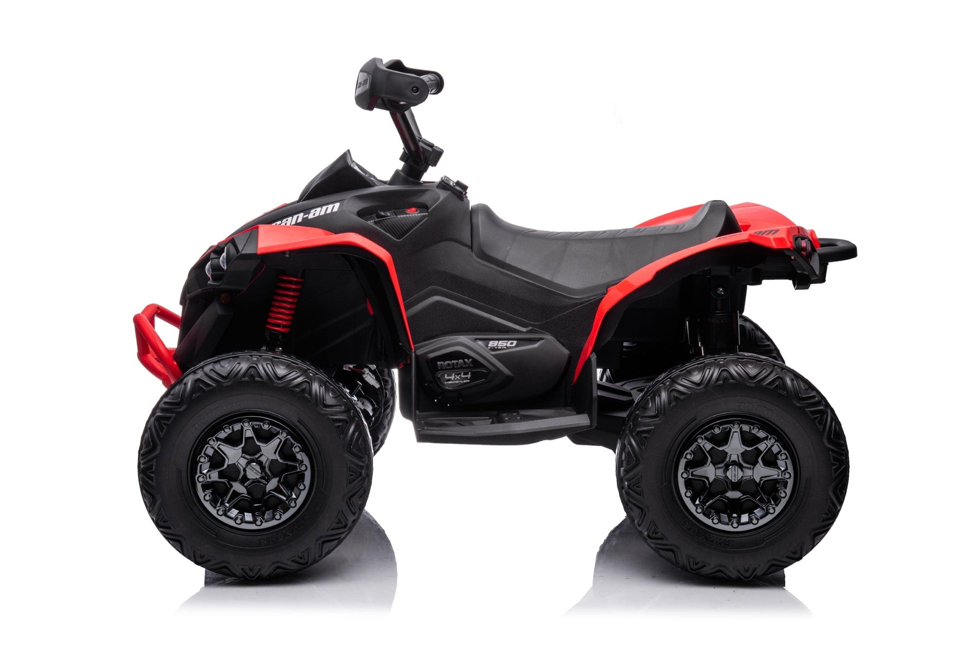 Embark on a thrilling outdoor adventure with the Can Am Renegade 24V Ride on ATV for kids aged 36-96 months. This officially licensed ATV comes with a robust 24V battery and four 200W motors, enabling a top speed of 5MPH for up to 50 minutes of continuous fun. Its exceptional features include an electric display, music playback via MP3/USB/Radio/Bluetooth, bright LED lights, and a button start. Safety is paramount with a two-point seat belt, EVA tires for shock-absorbing rides, and a comfortable leather seat. Its unique 22/44 switch allows for versatile driving experiences. Ideal for young explorers, this ATV is ready to conquer any backyard terrain.