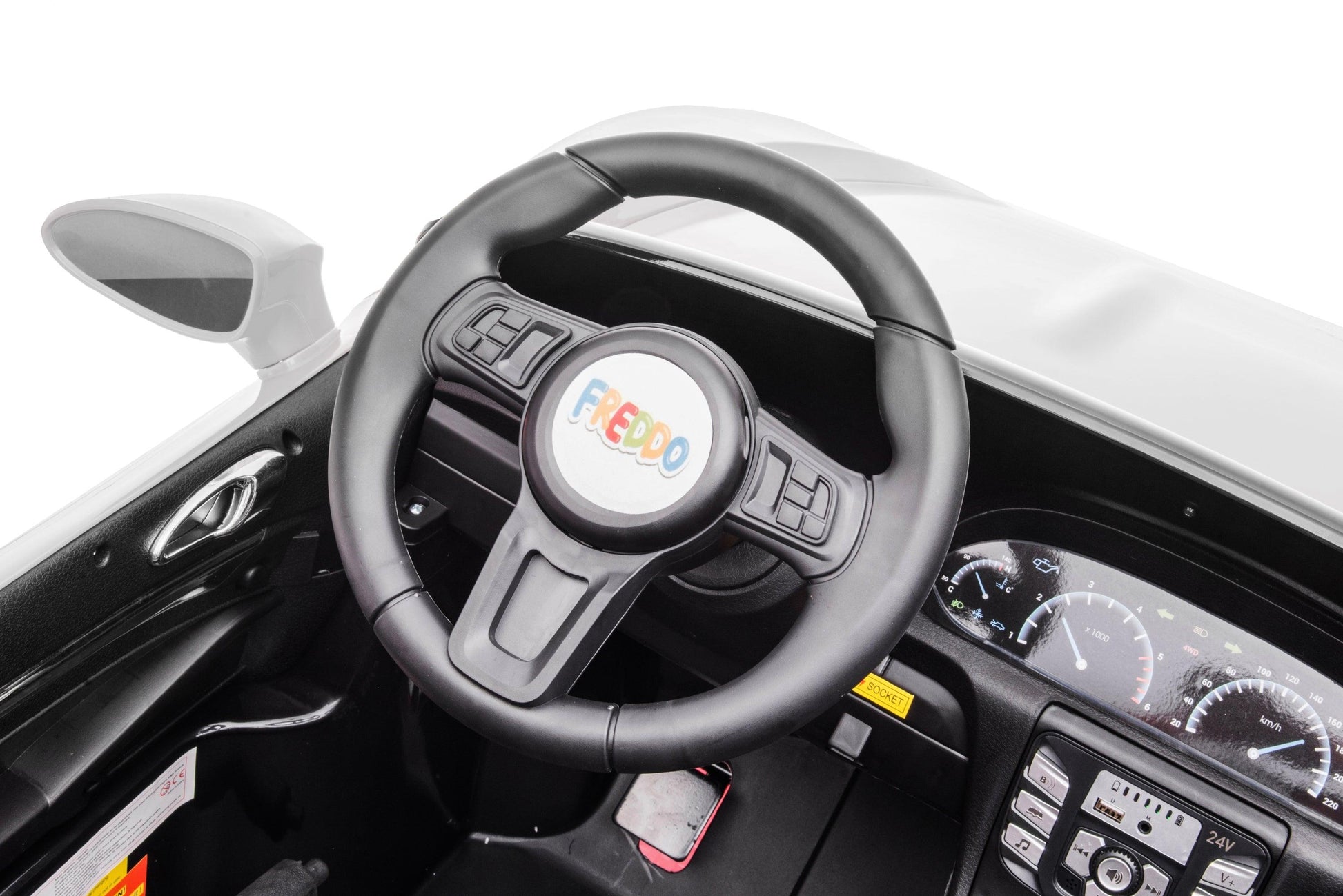 - It's called the Biggest for a reason! This magnificent ride on car is super spacious and perfect to drive alone or with company while listening to your favorite music and enjoying a smooth ride thanks to its EVA tires and its comfortable leather seats.