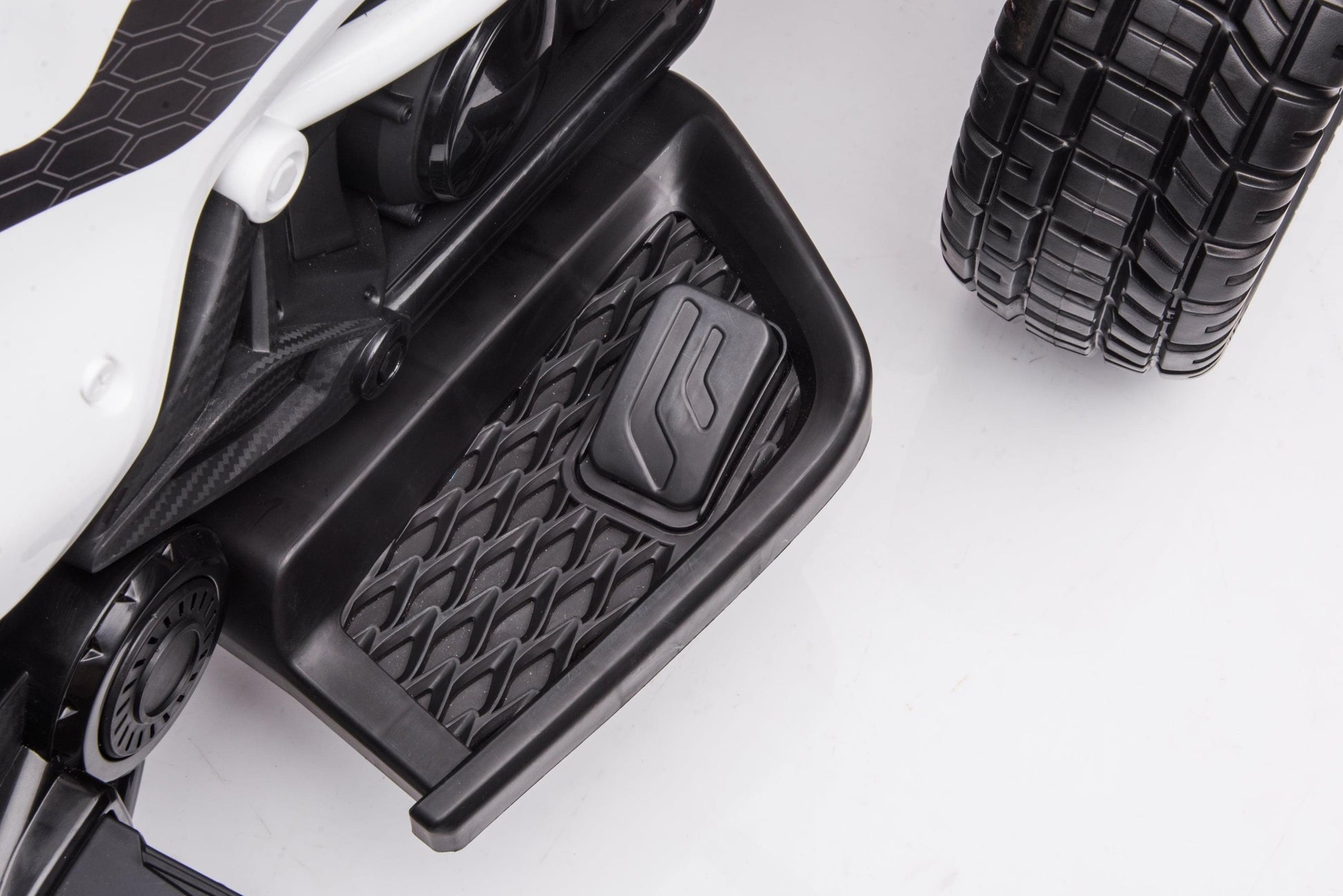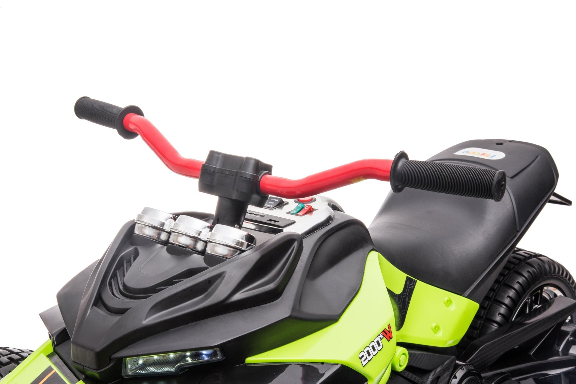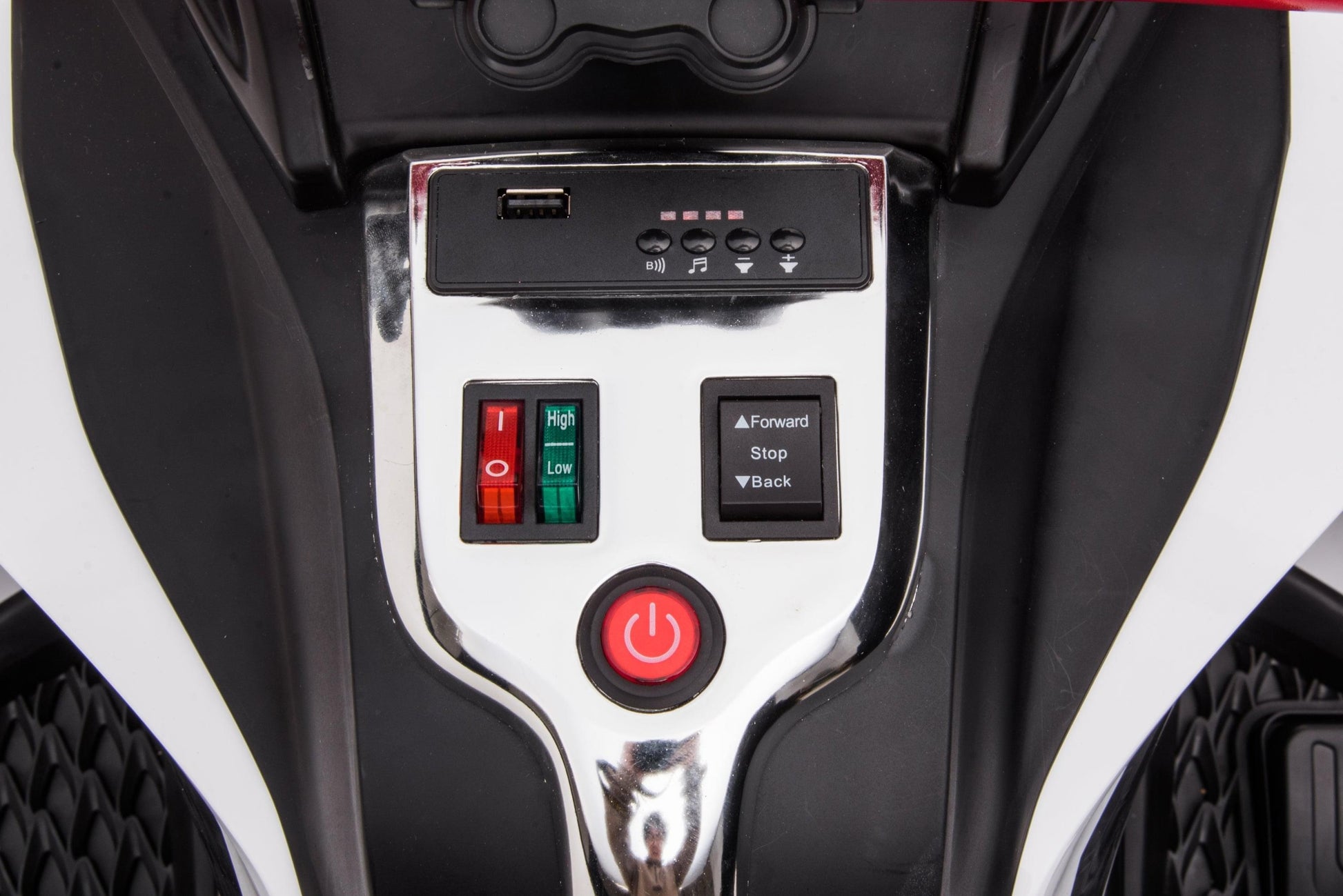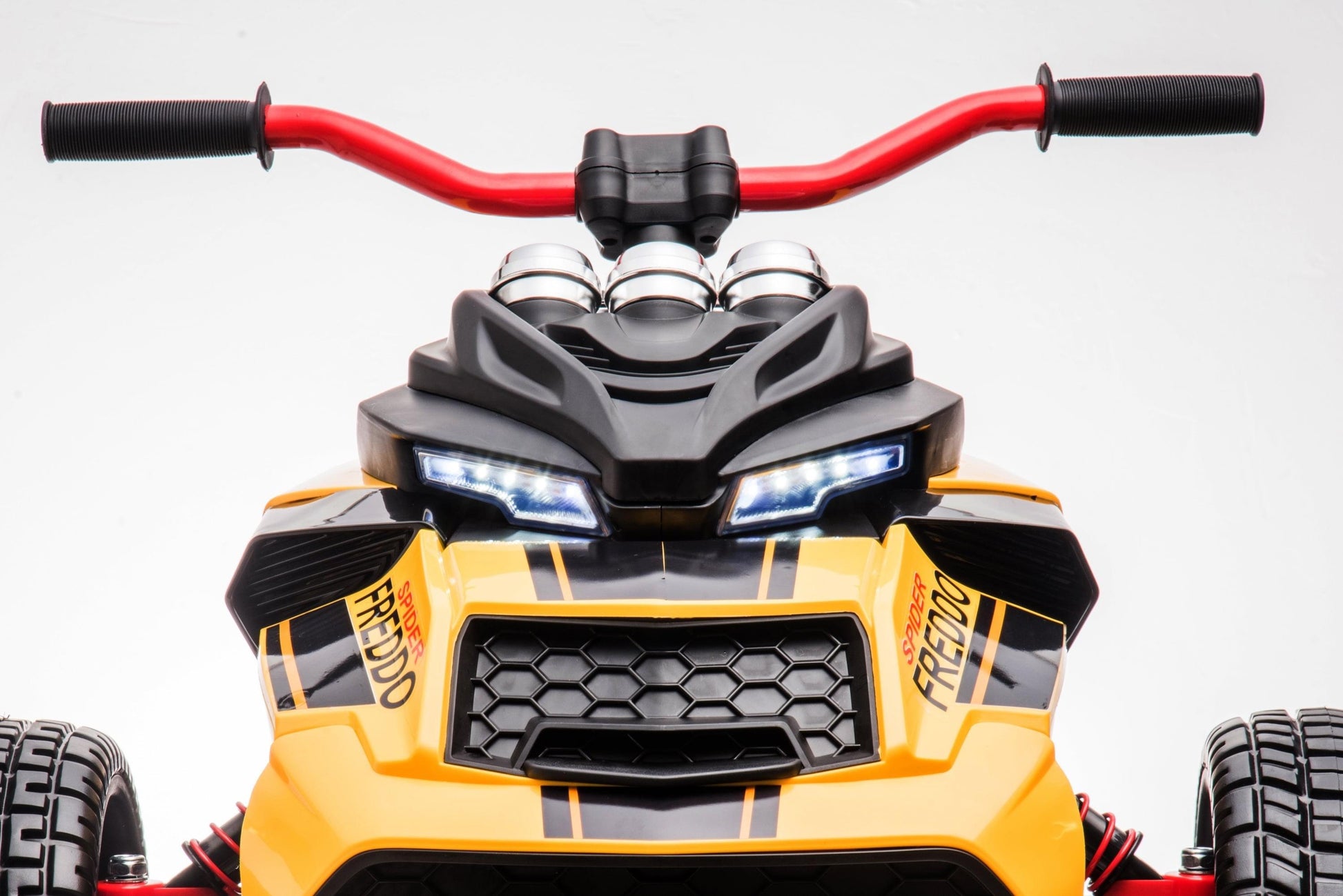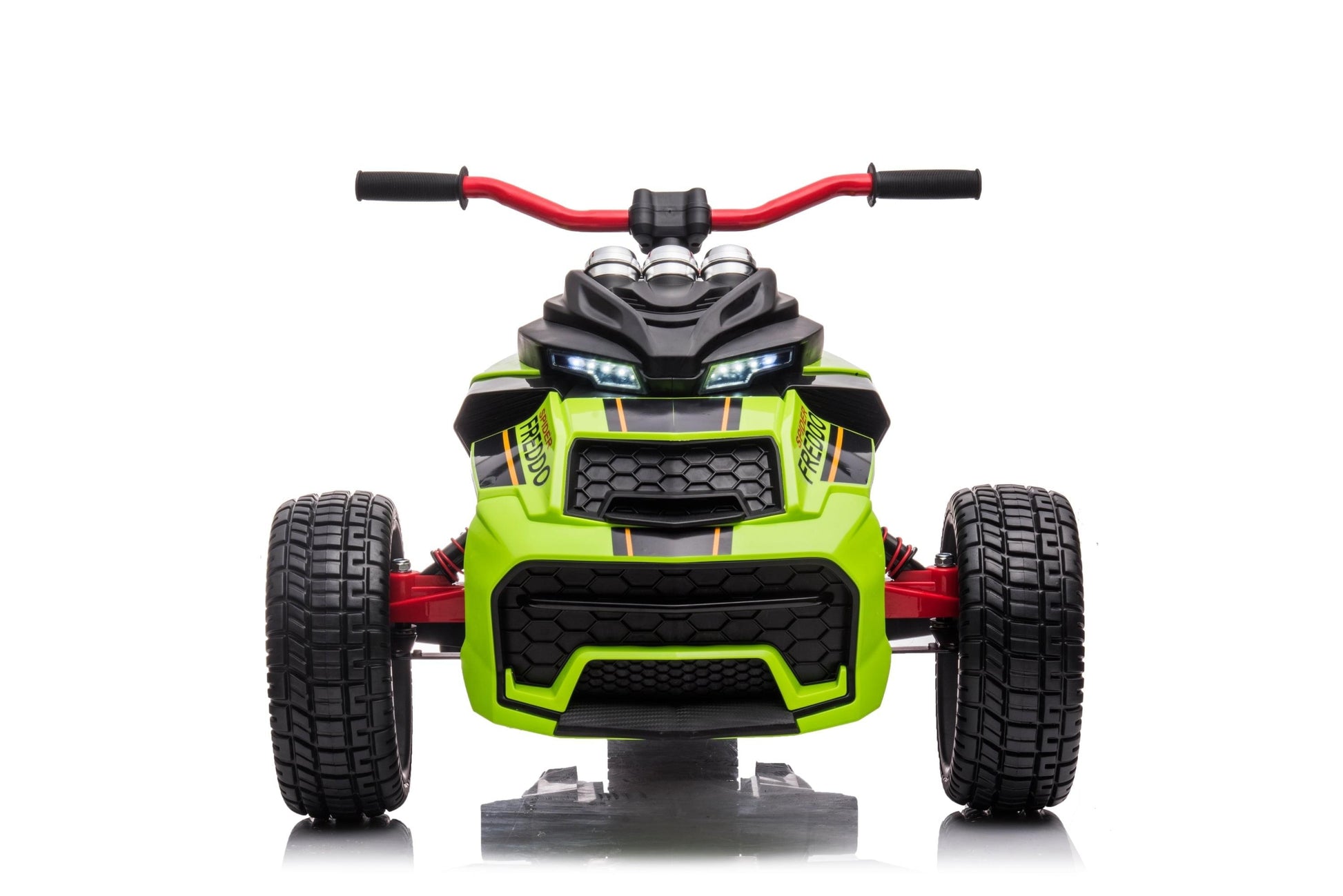The Freddo Spider 2-Seater Ride-On 3 Wheel Motorcycle offers an exhilarating adventure for kids aged 37-96 months. It's powered by a 24V battery and features two 45W motors, allowing for speeds between 2.7 to 5.4 MPH. Kids can enjoy music through the USB slot with MP3/AUX input and Bluetooth connectivity, and the ride is illuminated by LED lights. This 3 Wheel Motorcycle is equipped with a sturdy rear suspension for smooth rides and comes with a 2.4G remote control for parental supervision. With up to an hour of running time, this 3 Wheel Motorcycle is perfect for outdoor fun.
