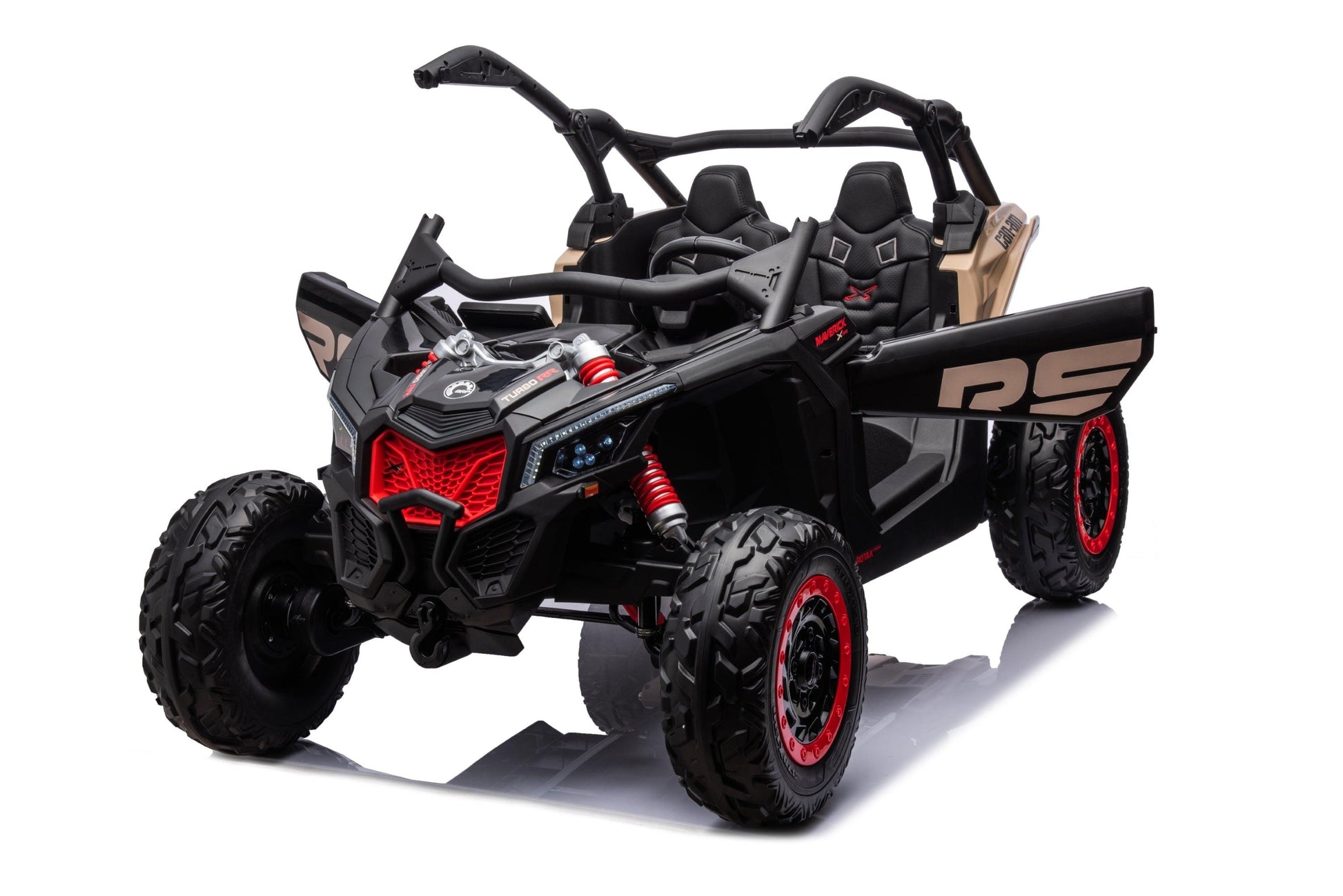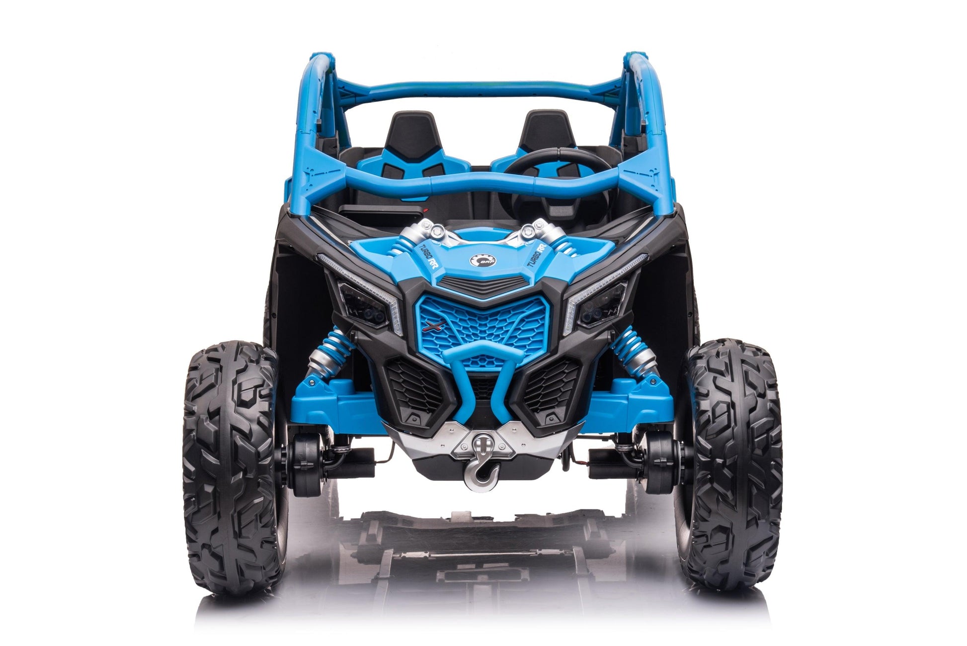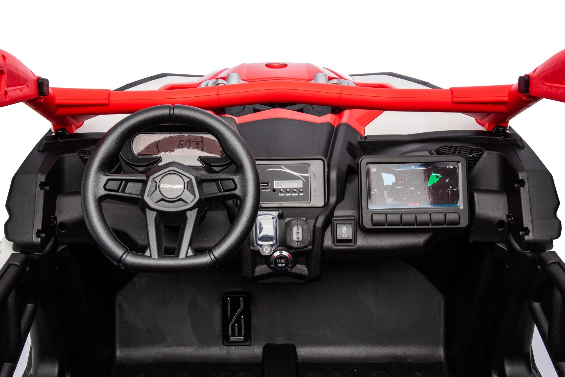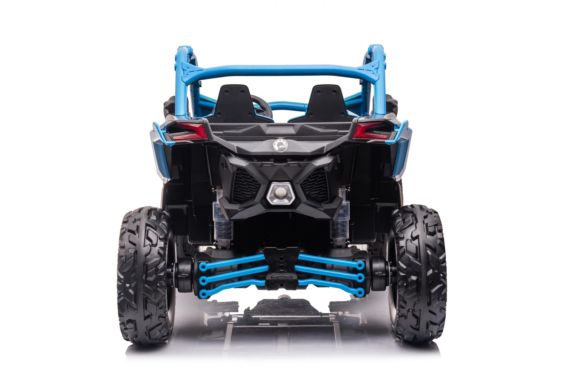 Get the whole family ready for a wildly fun ride with the 24Vx2 4x4 Can Am Maverick 2 Seater Ride on UTV for Kids! Make family rides more fun than ever with the 24Vx2 4x4 Can Am Maverick! Get ready for a safe and exciting ride with your little one. Enjoy the bump-free ride with the EVA tires, stay safe on the road with the LED lights, and control your little one’s speed with the parental remote control. Plug in your favorite tunes with the Mp3 + USB + Aux-in feature and make memories in the comfortable leather seat. Get your little one ready for their adventure with the 24Vx2 4x4 Can Am Maverick!