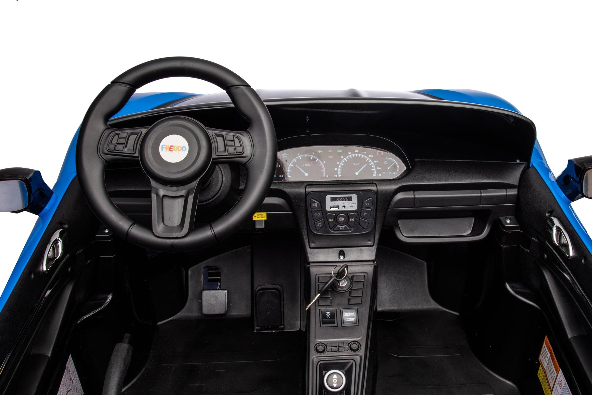 The 48V Freddo Rocket 2 Seater Big Ride on Car for Kids is designed with luxury, fun, and safety in mind. Featuring 2 powerful 24V 14AH batteries, tubeless air tires and a 600W brushless motor to give you more speed, power and durability for your ride on car, so you can zoom past the rest and have more fun! The adjustable leather seats and suspension provide a comfortable and smooth ride, while the LED lights and pedal brake keep kids safe. With a maximum weight of 220 lbs, this ride-on car is suitable for kids ages 14 and up. For added convenience and entertainment, the car includes a key start, MP3 + AUX + USB + Bluetooth, and a USB socket. Let your kids take their adventures to the next level.