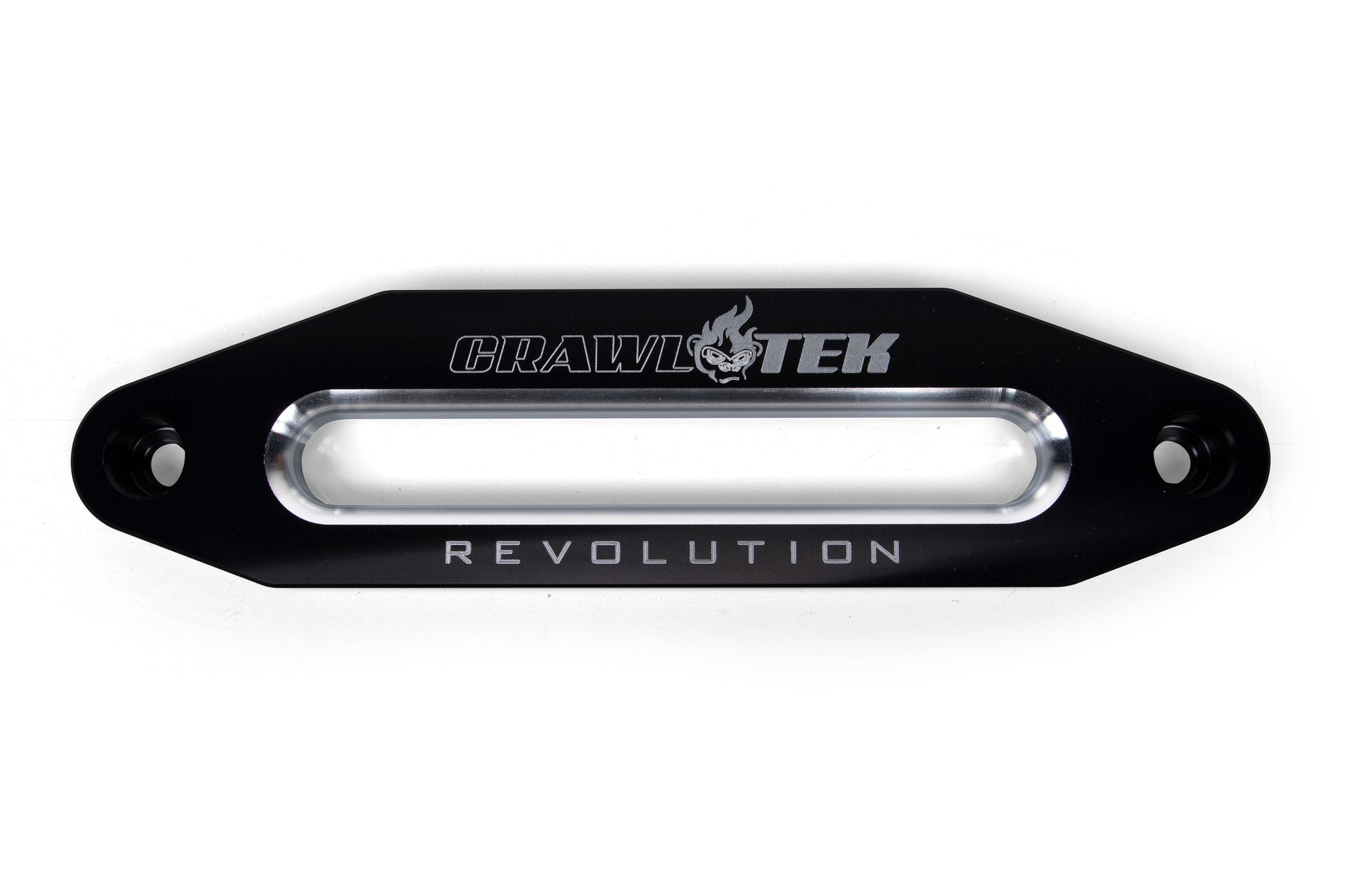 Enhance your CrawlTek Revolution front winch bumper with this CNC hawse fairlead, manufactured in the USA from T6-6061 aluminum our fairlead features a 10" bolt pattern and a 7" wide opening. Use this in conjunction with your synthetic or nylon rope-equipped winch to achieve maximum performance and line longevity.
