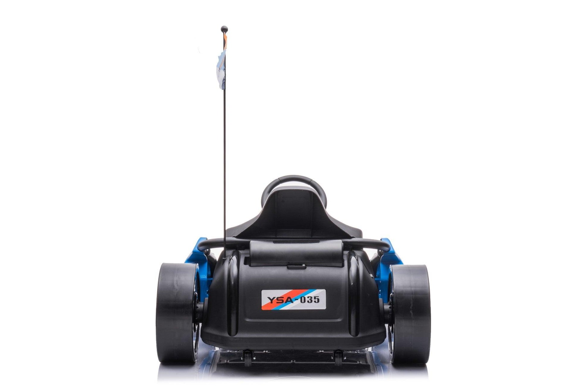 Let's welcome our new car! One more jewel by Freddo Toys in racing car format for lovers of action and speed. A dream come true for these kind of car lovers that will blow your mind once you drive it. Its powerful 24V battery, the drift Nylon wheels are amazing to make some crazy moves and have fun forever. No one will miss a drift since everyone will see you waving that sport flag that this car includes. This ride on car is perfect for big kids from 6 to 12 years old and supports up to 220 lbs.