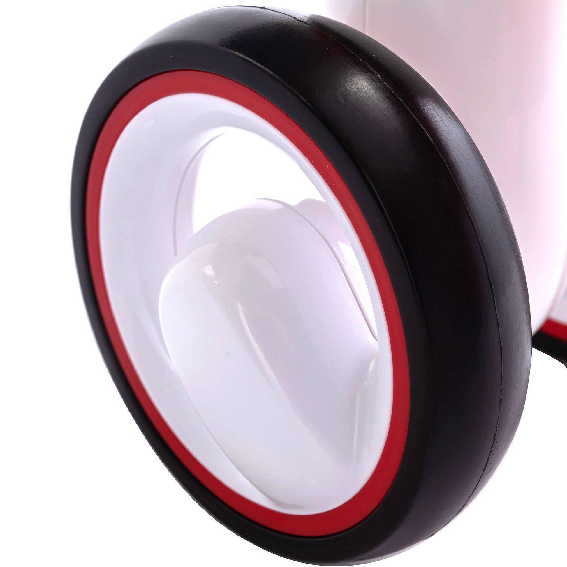 - The stability of the 3 wheels, together with the 8" soft and cushioned seat and the resistant materials like PP, EVA and iron, make this push car safe and suitable for your toddler's adventures on wheels.