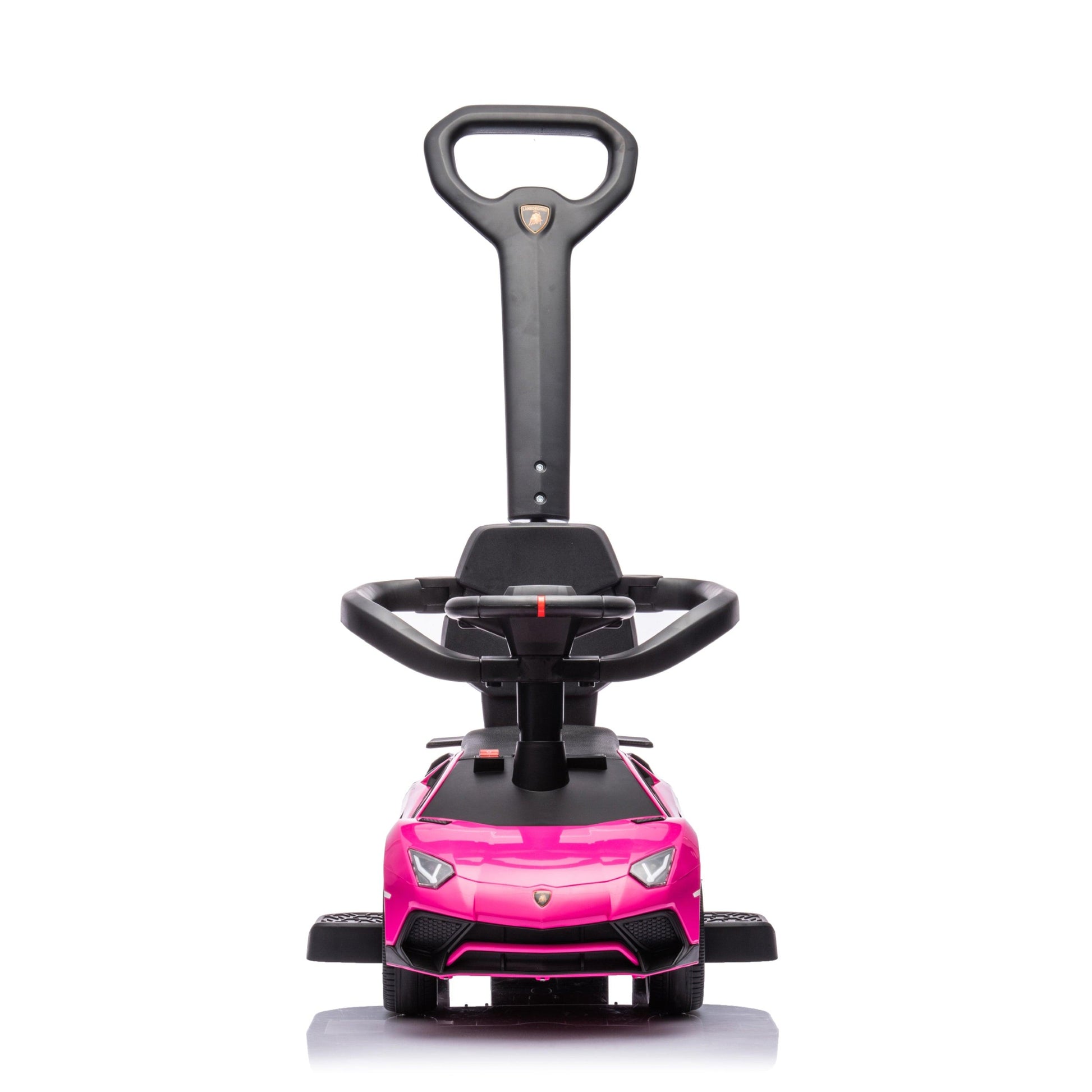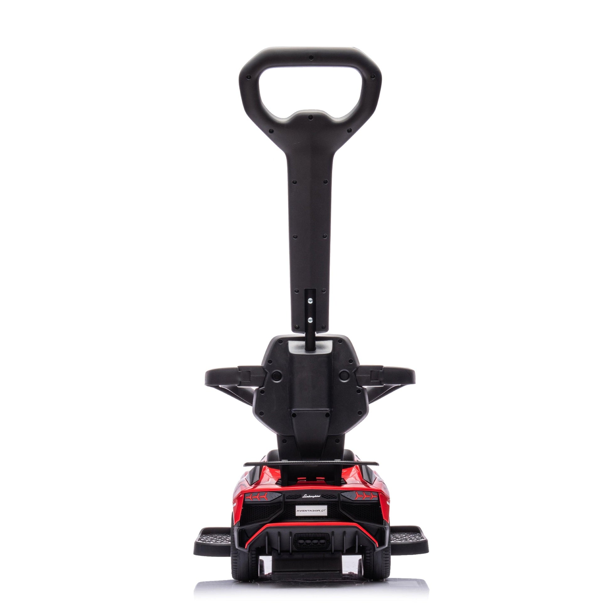 Introducing the Lamborghini 3-in-1 Ride-On Toy, an official licensed product perfect for children aged 3 and above. With a maximum load capacity of 30KG, this ride-on toy is designed to inspire your child's imagination and encourage active play. It features a front light (powered by dry cells) and built-in music for an immersive experience. The toy includes a convenient storage bin, high-quality plastic wheels, and a comfortable plastic seat. Safety is enhanced with a car guardrail and a seat backrest, while the push bar with turning function adds to the ease of use. Ideal for both indoor and outdoor use, this ride-on toy is a fantastic way for kids to engage in physical activity and develop their motor skills.